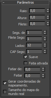 Gerar coordenadas para aplicar materiais mapeados para o cilindro chanfrado. Padrão=ativado.