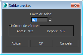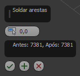 Use esta Caddy para definir o limite para vértices e Arestas e para visualizar o número de objetos secundários a serem soldados.