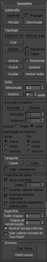 As funções disponíveis no nível de objeto de patch editável (ou seja, quando nenhum nível de subobjeto é selecionado) também estão disponíveis em todos os níveis de subobjeto e funcionam de maneira exatamente igual em cada nível.