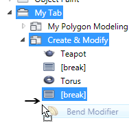 Uma cópia do item do painel Modelagem de polígonos aparece como filho do item My Tab. Você pode confirmar a cópia clicando na guia My Tab na faixa de opções. Você acabou de preencher sua guia!