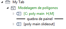 , é uma seção de um painel que normalmente contém ferramentas relacionadas.) O primeiro subpainel, denominado [C: poly main H,M], contém a parte visível do painel. O segundo subpainel, depois da divisão do painel, contém a expansão que se abre ao clicar no título do painel na faixa de opções.