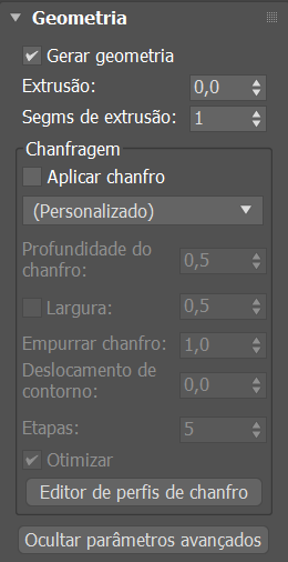 - Remove as etapas desnecessárias dos segmentos retos no chanfro. Padrão=ativado.