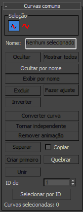 Este tópico descreve os controles comuns a curvas de ponto e de VC. Uma implementação rotulada como Curvas comuns contém os controles de subobjetos de curva para os modelos NURBS.