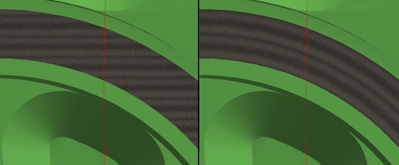 Valores inferiores fazem uma amostragem da superfície em intervalos menores ao longo de cada spline, mas levam mais tempo a processar. Valores maiores resultam em um processamento mais rápido, mas podem ignorar triângulos ou faces menores e estreitos.