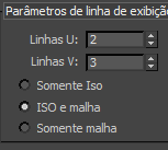 O número de linhas utilizadas para aproximar a superfície NURBS nas janelas, ao longo das dimensões U e V locais da superfície, respectivamente. Reduzir esses valores pode acelerar a exibição da superfície, mas reduz a precisão da exibição. Aumentar este valor aumenta a precisão ao gastar tempo. A configuração de um desses valores para 0 exibe somente a aresta do objeto na cota correspondente.