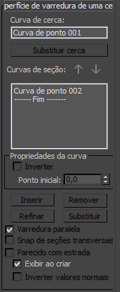 Estes controles afetam as curvas individuais selecionadas na lista de Curvas de Seção, em vez de propriedades da superfície de varredura em geral. Eles são habilitados somente quando uma curva é selecionada na lista de Curvas de Seção.