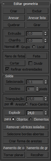 Malha editáveis (objeto) controles estão disponíveis quando nenhum subobjeto níveis está ativo. Estes controles estão disponíveis em todos os níveis de subobjeto, e funcionam da mesma forma em cada nível, exceto quando indicado em Editar geometria suspensa (malha ).