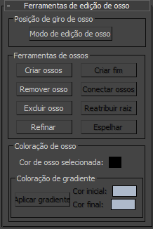 Os controles da implementação das Ferramentas de edição de ossos permitem criar e modificar a geometria e estrutura do osso e definir a cor do osso para um ou mais ossos.