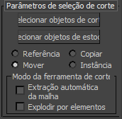 - Quando ativado, os objetos selecionados são designados como cortadores, usados para subdividir objetos de estoque.