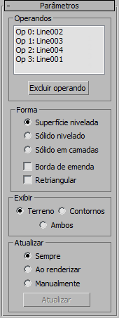 Mostra o nome do objeto terreno. O 3ds Max usa o nome de um dos objetos selecionados para nomear o objeto terreno.