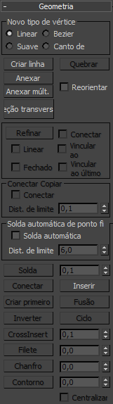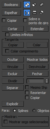 Clique neste botão para exibir a caixa de diálogo Anexar múltiplas, que contém uma lista de todas as outras formas na cena. Selecione as formas que deseja anexar à spline editável atual e, em seguida, clique em OK.