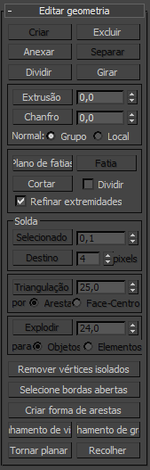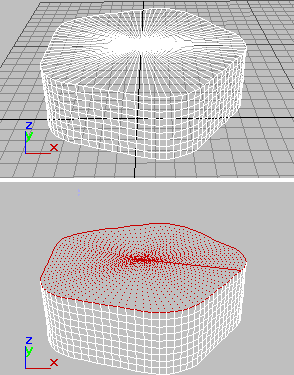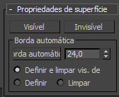 Os controles afetam a visibilidade das bordas. Arestas invisíveis (também chamado de linhas de construção) aparecem nas viewports quando somente arestas está desativada na exibição do painel de comando, ou quando você estiver editando na aresta de subobjetos de nível. A visibilidade de arestas é principalmente de importância quando um objeto está sendo renderizada utilizando um material de estrutura de arame.