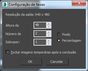 A caixa de diálogo Configuração de faixas aparece. A caixa de diálogo exibe a resolução de saída e permite determinar como dividir o trabalho de renderização ao especificar o número de faixas de horizontal no qual a imagem será subdividido.