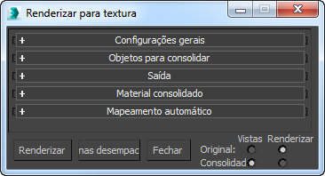 A renderização para textura, ou a "consolidação de textura", é controlada por essa caixa de diálogo. A maioria dos controles dessa caixa de diálogo está contida em suas implementações.