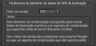 - Quando você usa um agente de renderização que não suporta saídas de ponto flutuante, defina o Fator de escala para um valor menor do que 1.0. Padrão = 1.0 (sem escala).