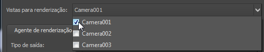 - Selecione as vistas para renderizar. Com o 3ds Max, o Autodesk Rendering renderiza somente vistas de câmera. Ao clicar no botão Renderizar, é possível iniciar a renderização de mais de uma vista de câmera.