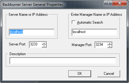 Ao executar o gerenciador pela primeira vez, será possível ver a caixa de diálogo Propriedades gerais do gerenciador do Backburner, como mostrado abaixo.
