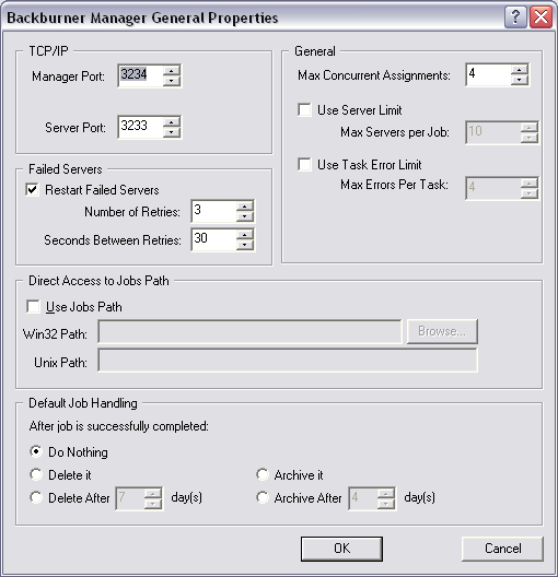 Caixa de diálogo Propriedades gerais do gerenciador do Backburner