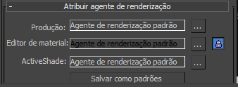 Clique para salvar as atribuições atuais do agente de renderização como padrões para que estejam ativas da próxima vez em que você reiniciar o 3ds Max.