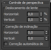 Estas configurações inclinam a câmera na horizontal ou na vertical. Você pode utilizá-las para corrigir a perspectiva, especialmente em cenas onde a câmera já está inclinando para cima ou para baixo.