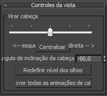 Nota: Os controles de Virar cabeça e Ângulo de inclinação da cabeça usam um controlador de Bézier para rotação do percurso virtual da câmera. Se você criar muitas chaves ou as colocar muito próximas, poderá ter resultados inesperados. Para obter melhores resultados, comece no início e adicione chaves à medida que você se move para o final, criando o menor número possível de chaves.