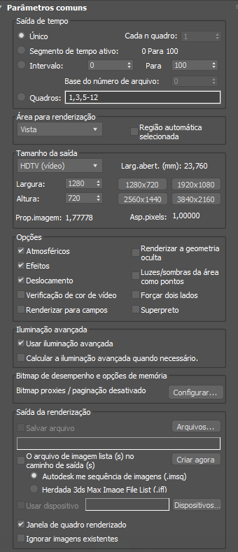 Exibe se o 3ds Max usa mapas em resolução completa ou proxies de bitmap para renderização. Para alterar esta configuração, clique no botão Configuração.