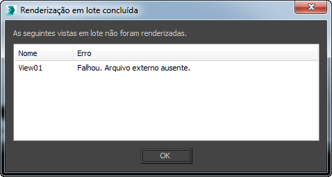 Essa caixa de diálogo notifica você sobre a qual renderização em lote não foi concluído. Se possível, ele fornece uma descrição do motivo da ocorrência do erro.