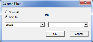 Abre a caixa de diálogo Colunas de Trabalho, com colunas adicionais que você pode arrastar para a fileira de título da lista de trabalhos. Quando você arrasta uma coluna sobre a fileira de título, setas são exibidas indicando onde a coluna será inserida.