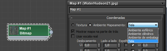 Para colocar o mapa no Editor de materiais, abra o Editor de materiais e o painel Ambiente. Arraste o botão Mapa do ambiente e solte-o na Vista ativa (para o Editor de materiais Slate) ou em uma ranhura de amostra não utilizada (para o Editor de materiais compacto). Quando o 3ds Max solicitar, selecione Instância.