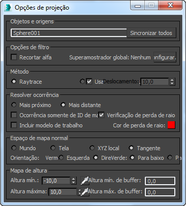 Os dois botões são para cenas que têm objetos semitransparentes, sendo que, nesse caso, pode ser encontrada mais do que uma ocorrência para cada ray. Os restantes controles nesse grupo são controles de projeção adicionais.