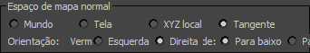 A configuração correta de vermelho e verde depende do tipo de sombreador ou textura de hardware que será usado para ver o mapa. Diferentes sombreadores têm diferentes requisitos. O mapa de Saliência de Normais tem controles para inverter o vermelho e o verde; a textura Saliência de Normais deve funcionar corretamente se o mapa tiver sido criado com as configurações X e Y ou Esquerda e Direita padrão, mas se o mapa tiver sido criado com diferentes configurações, altere as configurações Saliência de Normais para a renderização do mapa ocorrer corretamente, em vez de renderizar todo um novo mapa.