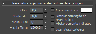 O Controle de exposição logarítmica usa brilho, contraste e o fato de a cena ser no exterior à luz do dia ou não, para mapear valores físicos para valores RGB. Pode-se utilizá-lo com o agente de renderização da linha de digitalização padrão. O Controle de exposição logarítmica é o melhor para cenas com um intervalo de dinâmica muito alto.