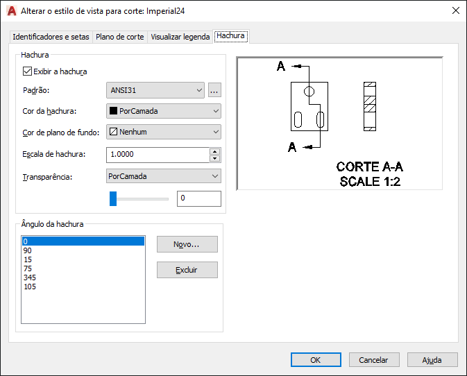 Guia Hachura (Gerenciador de estilo de vista para corte)