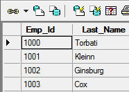 A janela Visualizar dados exibe os registros da tabela de banco de dados selecionada. A janela Visualizar dados é formada por um conjunto de botões, uma janela de grade para vista e edição de registros e um conjunto de controles de navegação que permitem navegar pelo conjunto de registros. Após a janela Visualizar dados for aberta, o menu Visualizar dados será adicionado à barra de menus. Você pode especificar se a janela Visualizar dados pode ser encaixada ou ancorada ao clicar com o botão direito do mouse e ao escolher uma opção no menu de atalho.