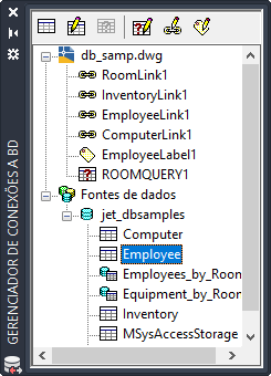 Contém nós para cada desenho atualmente aberto e um nó Origens de dados com todas as origens de dados disponíveis configuradas no sistema.