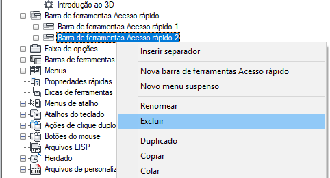 Para excluir uma barra de ferramentas de acesso rápido