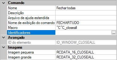Um menu suspenso exibe uma lista dos identificadores anteriormente utilizados (se houver). Clique em um identificador no menu para usar aquele identificador. Você pode adicionar mais de um identificador a um comando; separe cada identificador com uma vírgula.