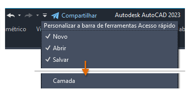 Quando a faixa de opções está minimizada, o acesso às ferramentas no painel Camadas não é tão conveniente. No entanto, como alternativa, é possível adicionar a lista suspensa Camada na barra de ferramentas de acesso rápido.