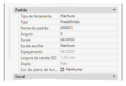 Dica: Clique com o botão direito do mouse em uma ferramenta de hachura e escolha Propriedades para exibir a caixa de diálogo Propriedades da ferramenta e editar as propriedades da ferramenta.
