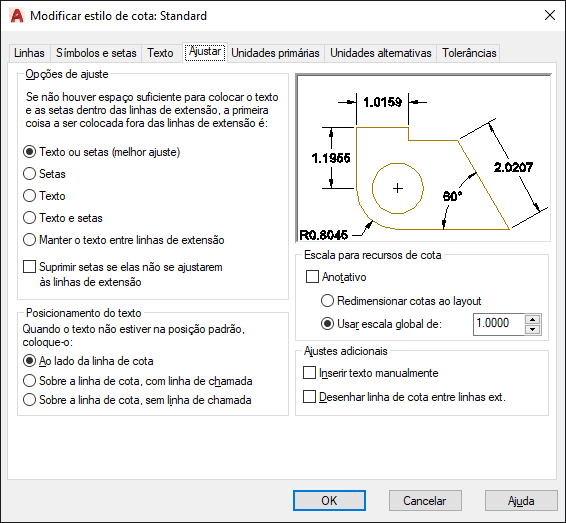 Fornece opções adicionais para o posicionamento do texto de cotas.