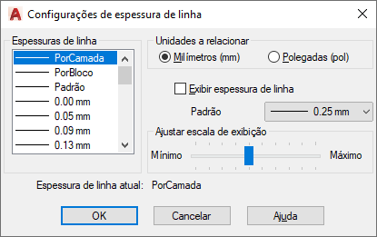 Controla a espessura de linha DEFAULT para camadas. (variável de sistema LWDEFAULT)