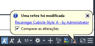 Quando você anexa refex a um desenho, o programa verifica periodicamente se os arquivos referenciados foram alterados desde a última vez que as refex foram carregadas ou recarregadas. A variável de sistema XREFNOTIFY controla a notificação de refex.