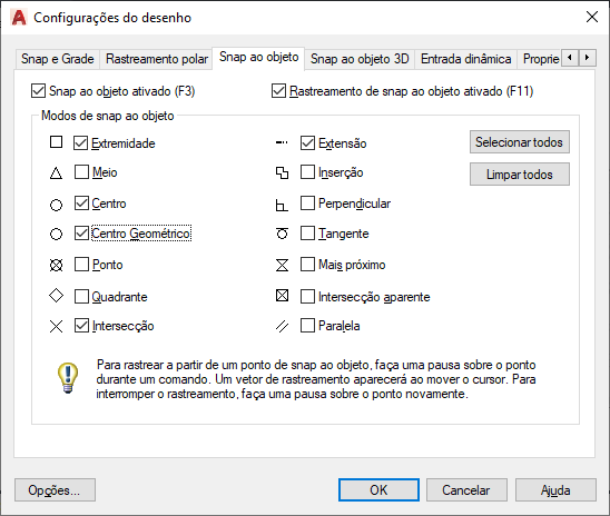 Controla se todos os modos de snap ao objeto especificado estão ativados ou desativados. (variável de sistema OSMODE)