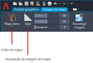 Se estiver conectado à Autodesk Account, você poderá alterar a resolução das imagens do mapa, modificar a extensão, ajustar a opacidade ou atualizá-las para a versão mais recente disponível no serviço de mapas on-line.