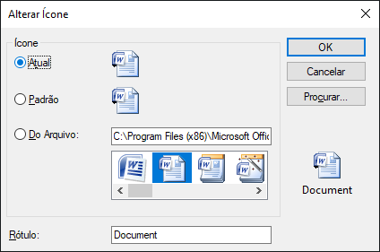 Exibe a caixa de diálogo Procurar (uma caixa de diálogo padrão de seleção de arquivo), na qual você pode selecionar um ícone de um arquivo.
