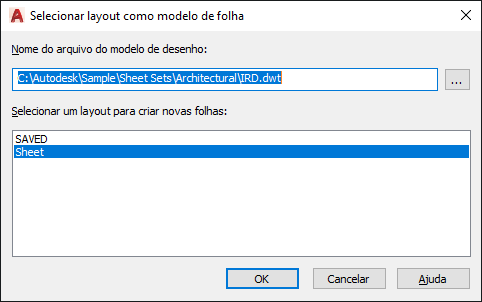 Caixa de diálogo Selecionar layout como modelo de folha