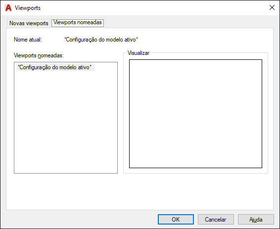 Guias para viewports espaço do modelo: Novas Viewports—Espaço do Modelo, Viewports Nomeadas—Espaço do Modelo