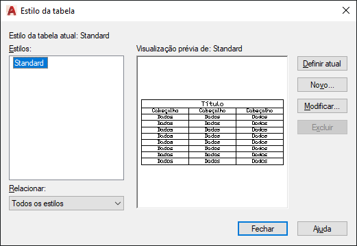 Exclui o estilo de tabela selecionado na lista Estilos. Um estilo em uso no desenho não pode ser excluído.