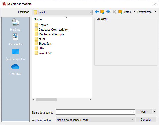 Exibe a pasta ou unidade atual. Clicar na seta para visualizar a hierarquia do caminho da pasta e para navegar pela árvore do caminho ou pelas outras unidades, conexões de rede, locais FTP ou pastas da Web (Web Folders ou My Network Places, dependendo da versão do sistema operacional). Você pode criar pastas da Web no Windows Explorer ou no Explorador de Arquivos. Consulte o administrador de sistema ou a Ajuda do Windows para obter mais informações sobre pastas da Web. Para verificar se os caminhos utilizados por último em cada caixa de diálogo padrão de seleção de arquivo, utilizar a variável de sistema REMEMBERFOLDERS.