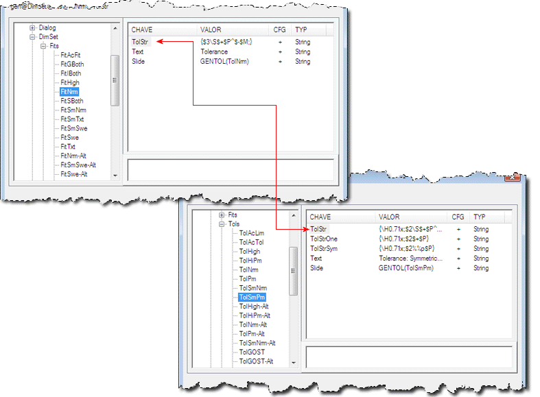 Contém a expressão de tolerância que será utilizada para as tolerâncias de lado único. Se esta chave não existe, o sistema utiliza TolStr.